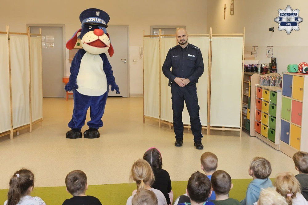 Sznupek i policjant uczą przedszkolaków bezpieczeństwa