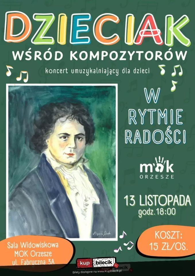 Tym razem, oprócz najróżniejszych instrumentów, będziemy poznawać największych kompozytorów - każdy koncert to przemyślany moduł, w którym edukacja spotyka się z emocjami i dobrą zabawą. Dlaczego warto? Bo "Dzieciak wśród kompozytorów" to nie tylko koncerty - to wzbogacone o multimedia spotkania, które zostają w pamięci, inspirują i bawią. To momenty, w których dzieci nie tylko słuchają muzyki, ale uczestniczą w jej odkrywaniu, razem z artystami i prowadzącym. A wszystko to w atmosferze radości, ciekawości i twórczego odkrywania świata muzyki.