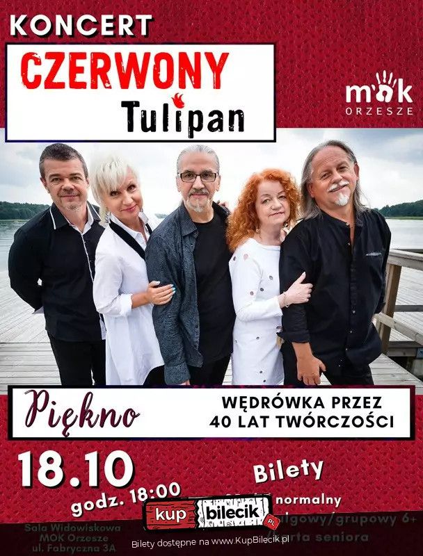 bilety: 18 października na naszej scenie wystąpi Czerwony Tulipan - mistrzowie i filary Krainy Łagodności. Stefan Brzozowski - kompozytor, wokalista, gitarzysta i szef, odpowiedzialny za profil artystyczny zespołu; Czerwony Tulipan artyści: Stefan Brzozowski, Ewa Cichocka, Krystyna Świątecka, Andrzej Czamara, Andrzej DondalskiCzerwony Tulipan tworzy i śpiewa piosenki "uczucia", czyli poetyckie i kabaretowe... zawsze literackie lub jak nazywają je niektórzy "piosenki artystyczne". Współpracuje z "Kabaretową Sceną Trójki"... i należy do "Krainy łagodności". Koncertował w Europie (Rosja, Niemcy, Francja, Szwecja, Austria, Węgry, Litwa), był z koncertami w USA i Kanadzie, gra koncerty w całej Polsce. Brał udział w wielu programach telewizyjnych i radiowych. Związany z Olsztynem (miejscem zamieszkania). Inicjuje koncerty, przeglądy, festiwale na terenie Warmii i Mazur. Wydał 10 płyt CD... oraz DVD zatytułowane "Obrazy i obrazki" - koncert na Zamku w Olsztynie (25 czerwca 2007 roku). Bilety do nabycia na: KupBilecik.pl |